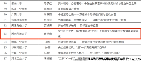2024年12月30日,全国金融专业学位研究生教育指导委员会揭晓了第十届(2024年)案例征集活动的评审结果。湖南科技大学商学院经济学系教工党支部党员、教授曾世宏,作为全国高校“双带头人”教师党支部书记“强国行”专项行动团队的一员,其撰写的案例《架“DCB”之桥,解“数据孤岛”之困:上海数交所赋能企业数据要素资本化》在众多参评作品中脱颖而出,成功入选中国金融专业学位案例中心案例库。