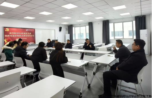 2025年3月11日下午,商学院经济学系教工党支部在第三教学楼616室召开2024年度党支部组织生活会和开展民主评议党员活动。会议由支部书记王鹤主持,全体支部党员参加。