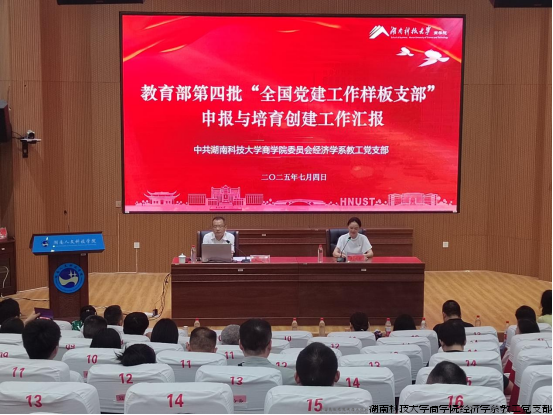▲湖南科技大学经济学系教工党支部书记王鹤汇报中
