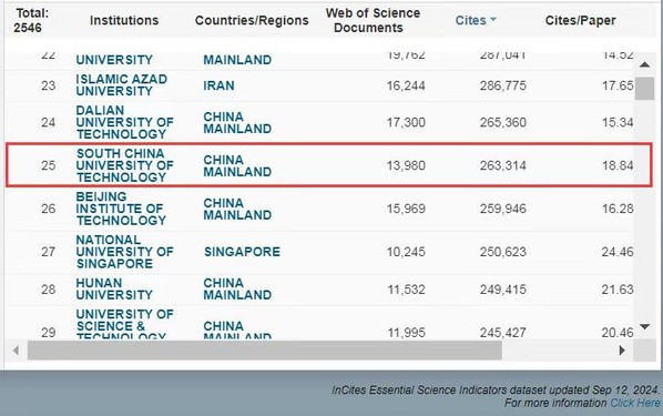 9月12日,根据ESI基本科学指标数据库最新数据显示,华南理工大学工程学成功迈入ESI全球排名前万分之一,成为学校首个、广东唯一进入全球顶尖水平行列的学科,是学校加速挺进全球百强大学进程中取得的重大标志性突破。