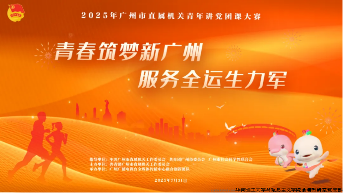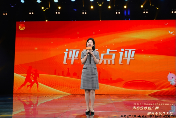 7月31日,“青春擂台”——2025年广州市直属机关青年讲党团课大赛圆满举办。华南理工大学马克思主义学院基础教研室党支部书记王晓丽担任大赛评委,助力广州市直机关基层理论宣讲工作提质增效。