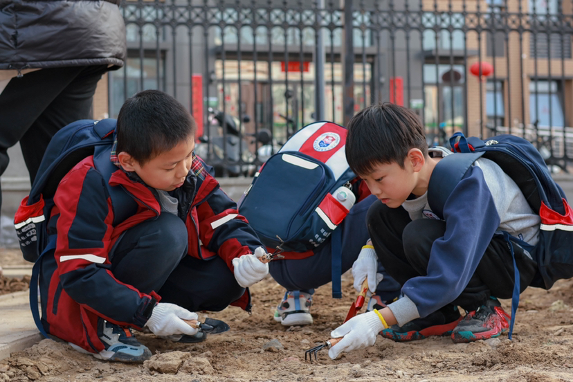 阳春三月,万物复苏,处处洋溢着春天的气息。春种一粒粟,秋收万颗子,恰逢一年春耕时节,一场别开生面的"开学第一课"在河南农业大学校园内拉开序幕。学校党委副书记何松林、学校相关部门负责人,以及农学院、郑州市金水区建业小学的师生代表共同在劳动中感悟"耕种从此起"的时节转换,体验"汗滴禾下土"的农耕不易。