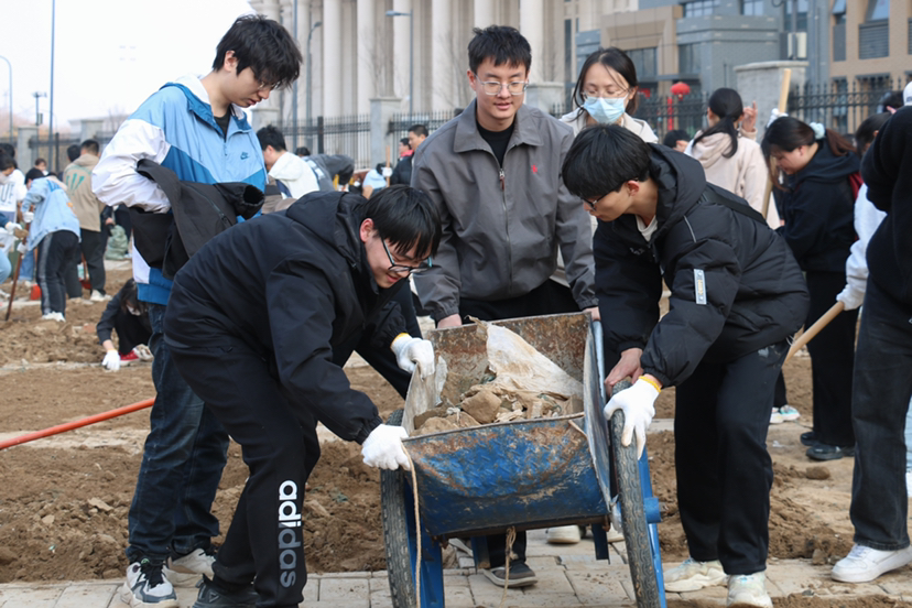 为了让师生深入体会劳动实践的意义,现场准备了充足的化肥、各种各样的农具,并由专业教师现场教学指导,保障学生安全劳动。待农具和化肥发放完毕,学生们精神抖擞,大学生带着小学生拿起农具开始投身农耕劳动,一片片欢声笑语交织着劳动的身影绘就一副热闹的景象。在专业人员和老师的指导下,学生们认真学习,相互讨论,感受传统农耕的魅力,感悟劳动带来的精神洗礼。