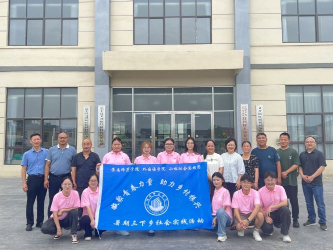 图为长丰县义井镇红桥村领导与“小松”社会实践团成员在村委会门前留影