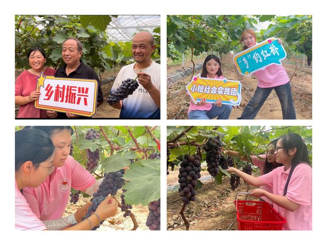 图为“小松”社会实践团在红桥村葡萄种植大棚内采访农户、体验葡萄采摘