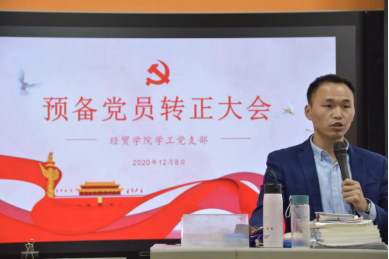 (通讯员 颜婷婷)2020年12月8日14:30,经济贸易学院学工党支部在第二教学楼101教室举行“预备党员转正”大会。本次大会由支部委员胡欢同志主持,全体党员和18、19级预备党员共同参与,大会讨论了支部预备党员期满转正相关事宜。