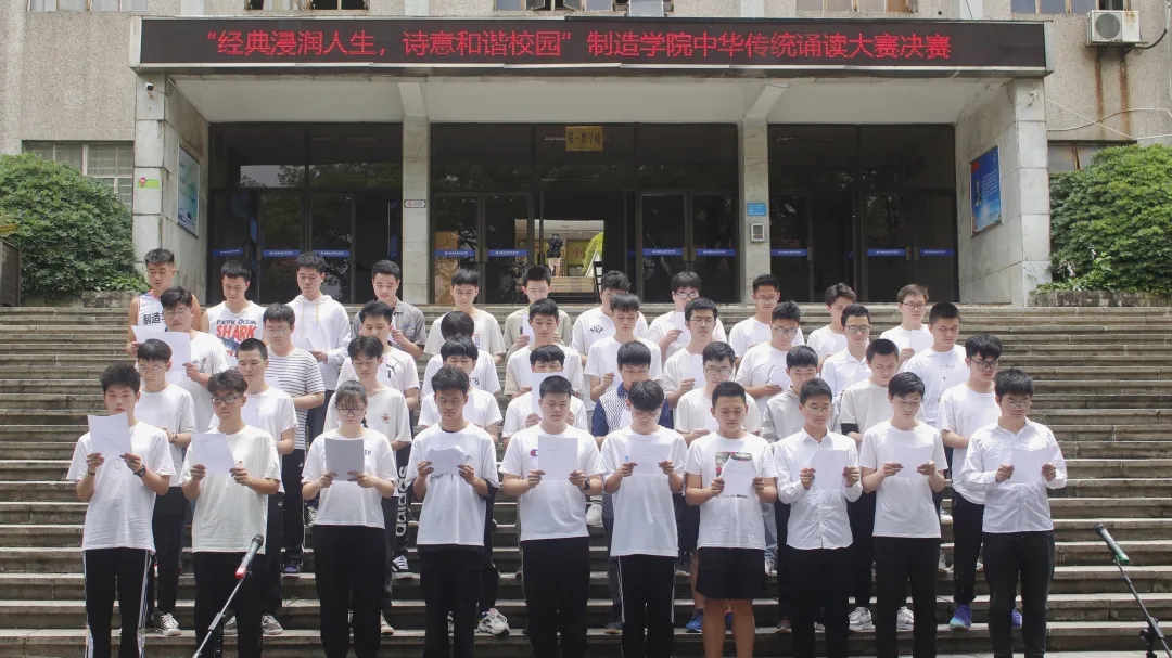 此次活动由制造学院全体班级参与。在4月20日举行初赛,由各个班级于晚自习时段进行“中华传统经典诵读”,并由制造学院学习部干事及部分委员进行综合评估,以确立决赛名单。