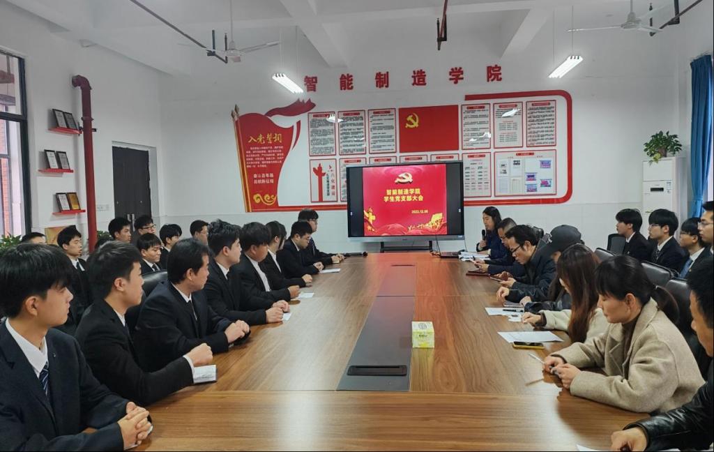 制造学院学生党支部于2023年12月8日在第二实训楼425党员活动室召开支部党员大会。出席此次会议的有:学院党总支书记汤劲、副书记王洪乔、学生党支部全体党员及王镭等21名发展对象。大会由学生党支部书记张晓霞主持。