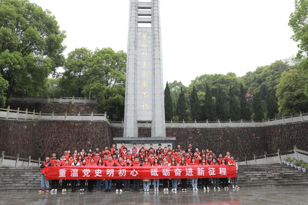 为了充分运用好株洲红色资源,进一步推进学史明理、学史增信、学史崇德、学史力行,提升思政课育人效果,打造思政金课,4月10日,支部马克思主义学院院长田文艳、学校思政教育研究与实践中心副主任兼马克思主义学院副院长周少斌带领思政课骨干教师、青年马克思主义理论学习社团——笃行社成员、青年马克思主义者培养工程2021年度培训班全体学员、校院两级学生干部、大学生记者团成员以及学生代表冒雨前往红色圣地株洲醴陵进行以“学党史明初心 砥砺奋进新征程”主题党史学习教育暨“行走的思政课”实践教学活动。