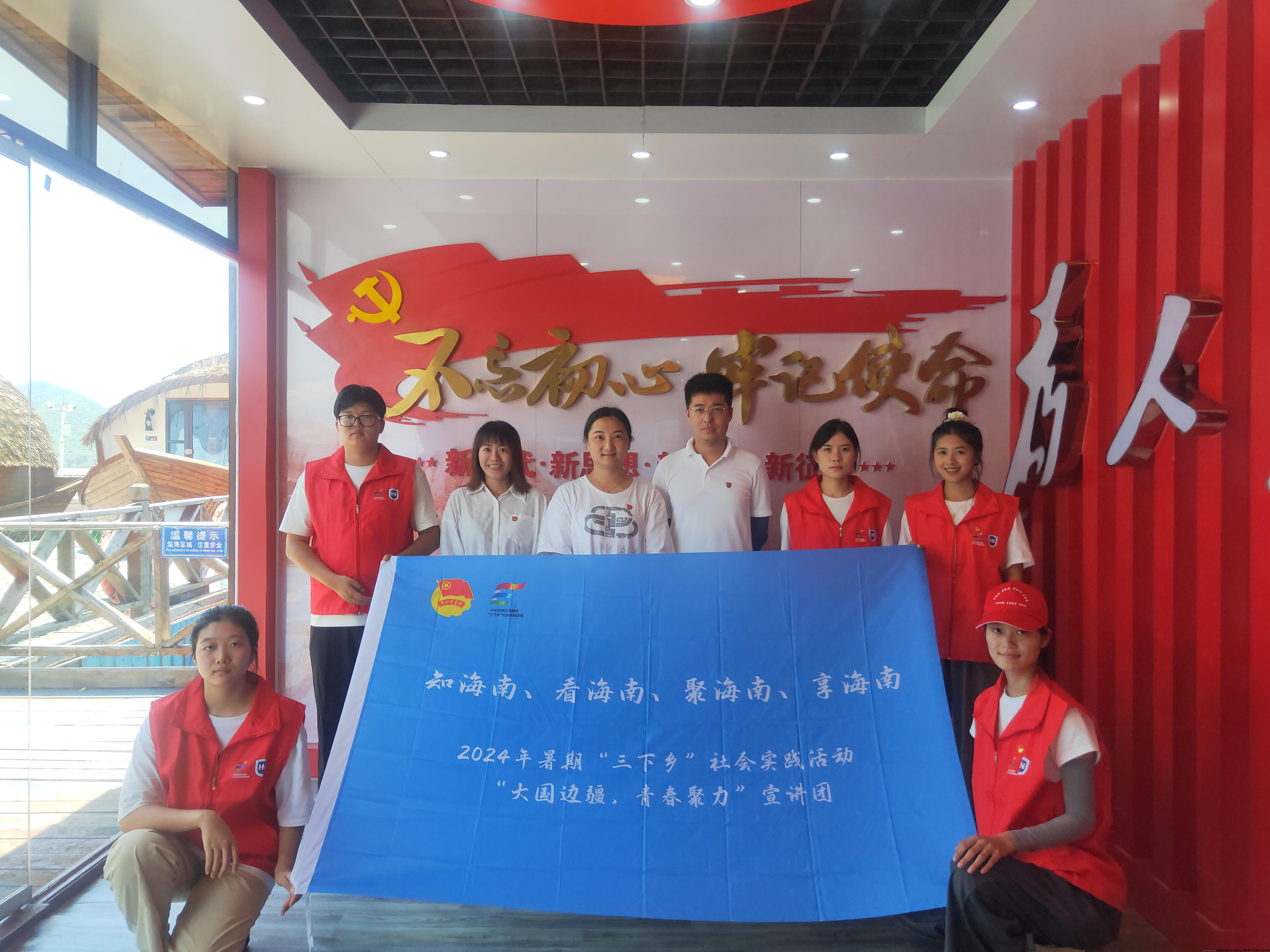 海南职业技术学院经济管理学院星火党员志愿服务队在2024年全国大学生暑期文化科技卫生“三下乡”社会实践活动中成功立项“知海南、看海南、聚海南、享海南” 专项社会实践活动,成为“大国边疆,青春聚力”宣讲团的一员,讲好海南红色故事、宣传边疆英雄事迹、筑牢爱国主义精神。