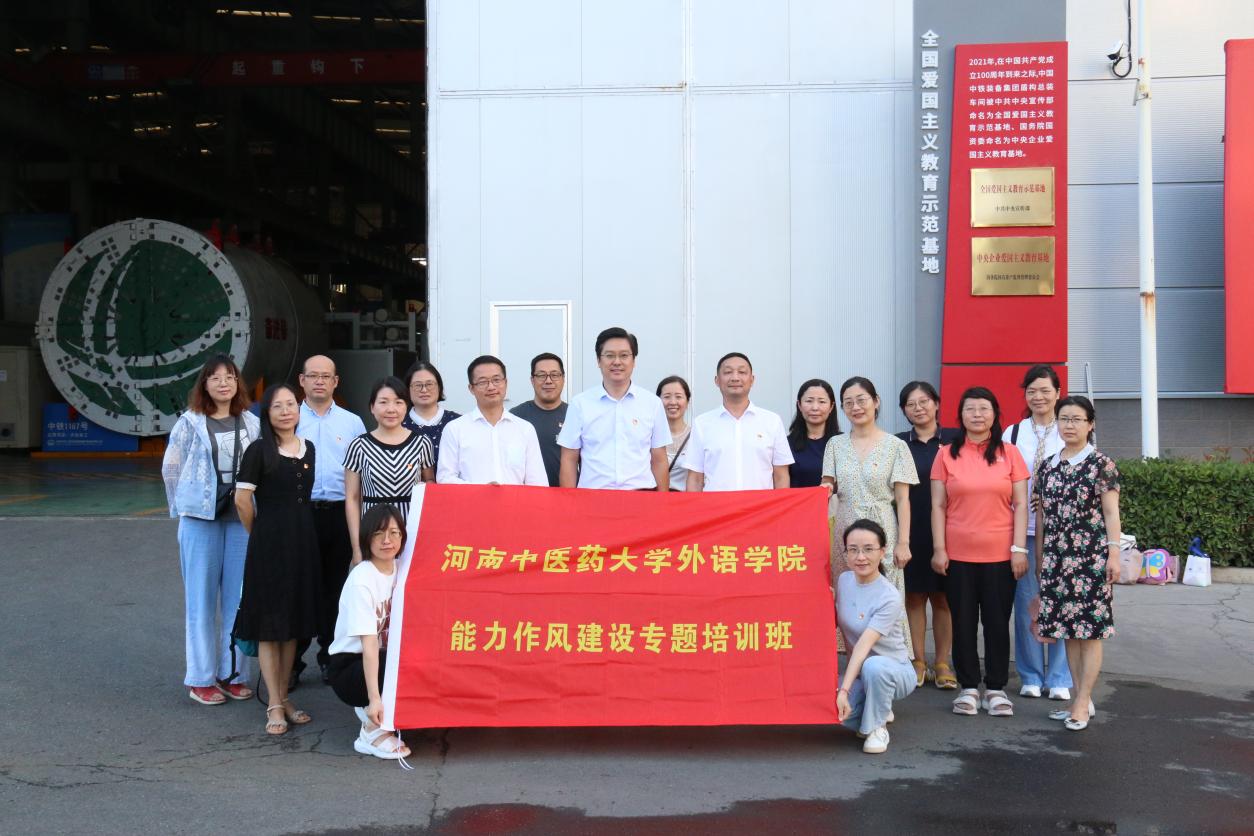为深入开展“能力作风建设年”活动,加强校级“标杆院系”“全国党建工作样板支部”培育创建工作,2022年7月7日下午,外语学院组织各党支部书记、支委委员、教师代表赴中铁工程装备集团有限公司参观学习。外语学院党委书记庞亚宾、副院长朱文晓、副院长张冰参加了此次活动。