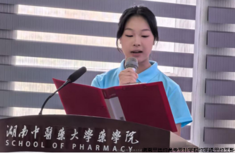 李虹运作为新生代表发言。她表达了对两校提供宝贵学习平台的感谢,阐述了对“楚怡”职教精神与中医药“大医精诚”精神相融合的理解。她满怀激情地表示,将珍惜来之不易的学习机会,秉承“爱国、求知、创业、兴工”的楚怡精神,以工匠之心钻研专业技能,将个人理想融入健康中国建设的伟大事业。她的发言展现了新生代医药学子追求卓越、勇于担当的精神风貌。