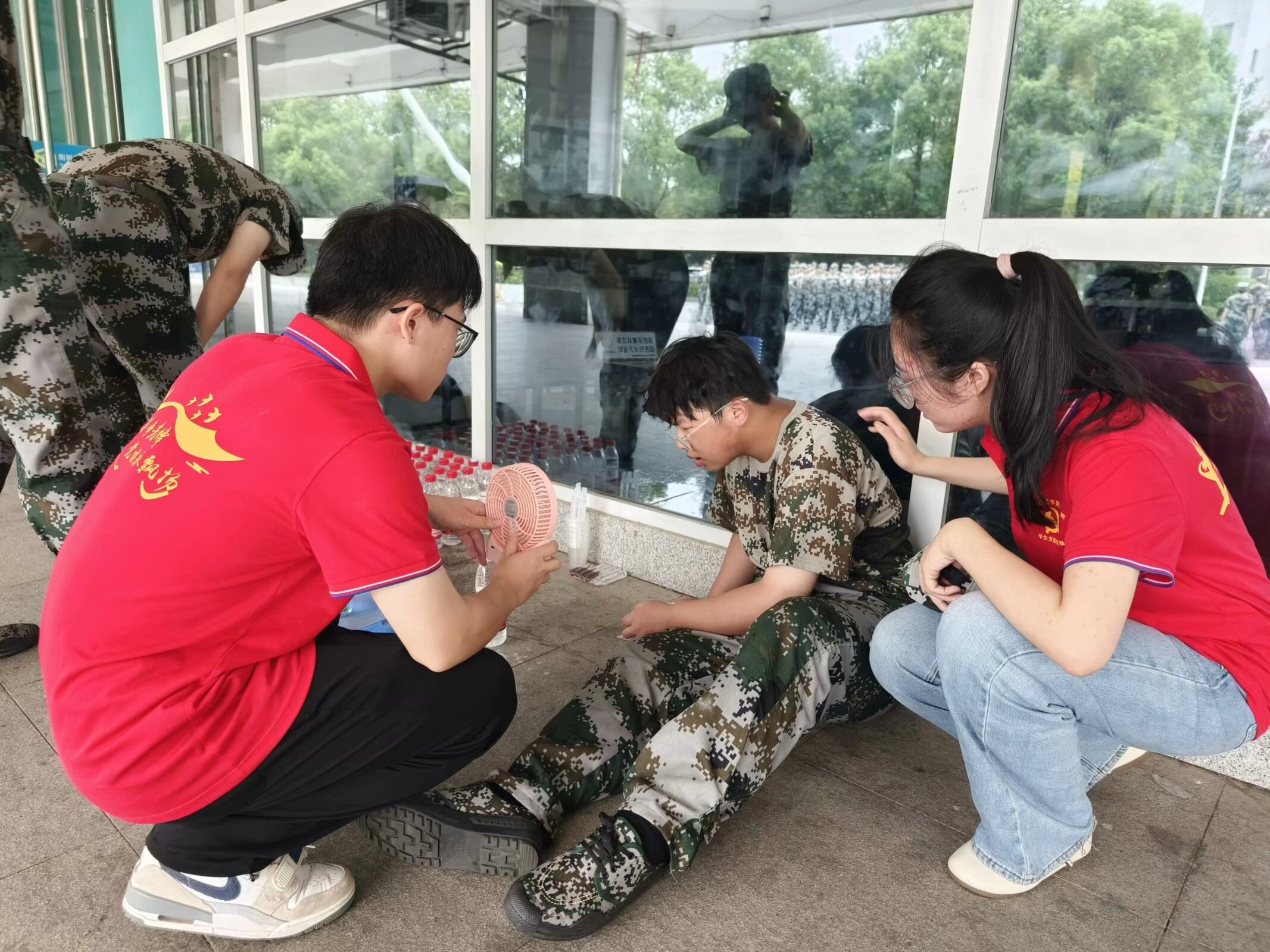 我院新生军训期间,我院学生党员于训练场展开值班服务。值班服务期间,我院学生党员负责搬运物资,照顾军训过程中身体出现不适的新生,及时为他们递上温水以及降暑药物,陪伴并护送身体不适的新生前往校医务室,为我院新生们提供良好的后勤保障。