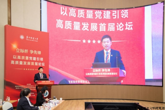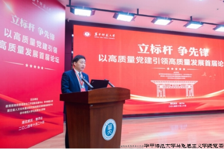 10月20日,“立标杆 争先锋 以高质量党建引领高质量发展首届论坛”在华中师范大学隆重举行。来自全国近40家高校、企业、行业组织的近百名党建研究专家、基层党委负责人、基层党支部负责人以及党建专业研究生等汇聚一堂,就“以高质量党建引领高质量发展”这一主题进行了深入交流与研讨。