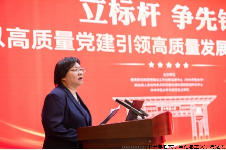 全国党建工作标杆院系、山东大学马克思主义学院党委书记鞠晗以“强学院 强学科 强课程 以高质量党建引领全国重点马院跨越式发展”为主题,介绍了该院党建“1-2-3-4”工作思路,从强学院、强学科、强课程等展开,介绍了以高质量党建引领全国重点马院跨越式发展的做法。