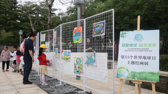 当天的活动主要有地球日主题绘画作品展、自然资源普法、地理知识有奖问答、湿地研学亲子游园以及共植一棵树等环节。