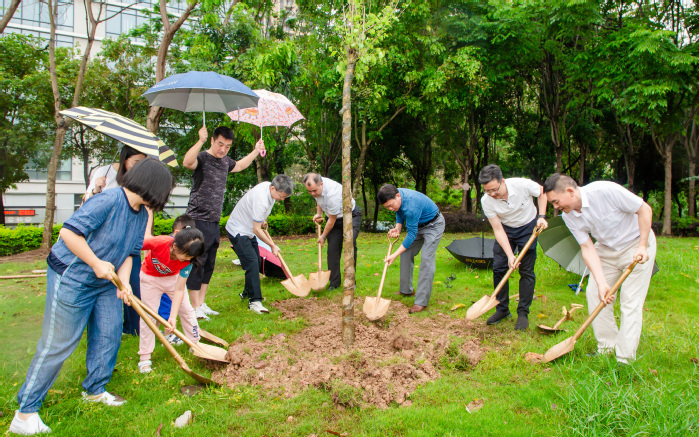 植树环节更是将活动推向了高潮。党员们身先士卒,带领大家挥锄挖坑、培土浇水,共同为金山湖公园添新绿。他们的身影成为了活动现场最亮丽的风景线。