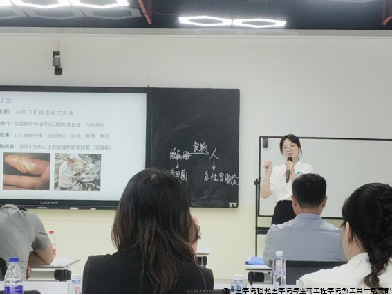 周茜老师在授课比赛中,巧妙地以细菌性食物中毒的案例作为导入,并且将这一案例贯穿于整个教学设计的始终。课堂上,她围绕该案例,清晰且系统地为大家介绍了细菌性食物中毒的概念、分型以及共同特征。在讲解知识的过程中,她更注重对学生能力的培养,通过案例分析与引导,助力学生提升分析和处理食物中毒事件的实际能力,让教学内容与实际应用紧密结合,展现出了优秀的教学思路与实践能力。