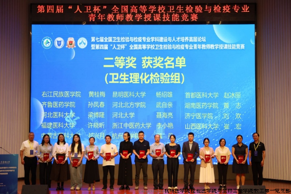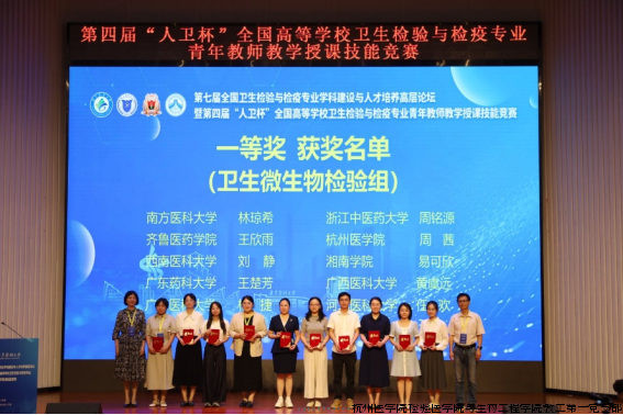 近日,第四届“人卫杯”全国高等学校卫生检验与检疫专业青年教师教学授课技能竞赛顺利举办。杭州医学院检验医学院、生物工程学院的教师们在此次竞赛中表现亮眼,其中周茜老师凭借出色的教学设计与授课表现荣获一等奖,魏丹老师凭借扎实的专业功底和生动的课堂呈现斩获二等奖,为学校赢得了荣誉。