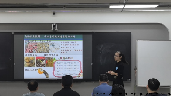 魏丹老师的参赛课程则聚焦于当下备受关注的食品安全热点真菌毒素检测。她从生活中常见的霉变食物入手,以此为切入点层层深入,细致剖析了真菌毒素的分类、产生条件以及对人体的健康危害。同时,她对黄曲霉毒素的多种检测方法进行了详尽且清晰的讲解。在课堂互动环节,魏丹老师灵活运用互动答题、视频演示、案例分析等多种丰富的教学手段,充分调动了课堂氛围。在最后,她还将国内外前沿的检测技术有机融入到教学内容中,展现出了扎实的专业知识储备和灵活的教学技巧。