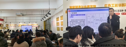 分享会上,两位教师围绕访学研修内容、德国“双元制”职业教育模式、职业教育体系建设及要求等方面进行了详细介绍。作为德国“双元制”教育典范,该校通过校企深度协同实现“理论+实践”融合培养,企业承担70%实训课程,学生毕业即具备岗位胜任力。两位教师重点考察了机电一体化专业模块化课程体系,并参观企业课堂设计,深刻体会到“工学交替”模式对技术技能型人才培养的助推作用。