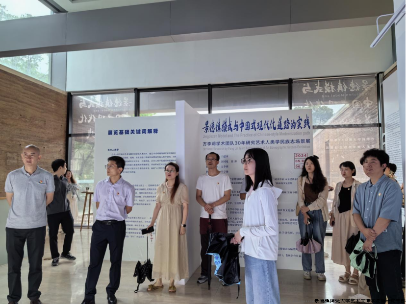 在工作人员的带领下,支部一行人共同参观了“景德镇模式与中国式现代化道路的实践”主题展览。此次展览以独特的艺术人类学视角,通过文字、图像、模型和场景再现,展示了景德镇从农业时代至工业时代、后工业时代、和后农业时代的发展过程。