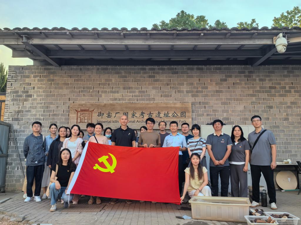 在工作人员的带领下,支部一行人共同参观了御窑厂东门的考古工地现场。在工作人员详细讲解下,全体党员深入学习了解了考古遗址公园的遗迹分布概况、各地层的叠压打破关系、遗迹年代功能用途和历史价值,提升了支部党员的专业素质,进一步坚定了文化自信意识。