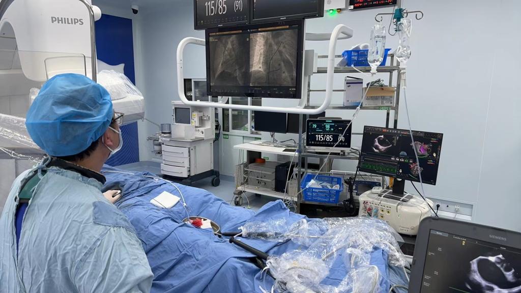 ▲刘旭阳副院长、陈仁华博士为患者实施ICE指导下房颤射频消融术