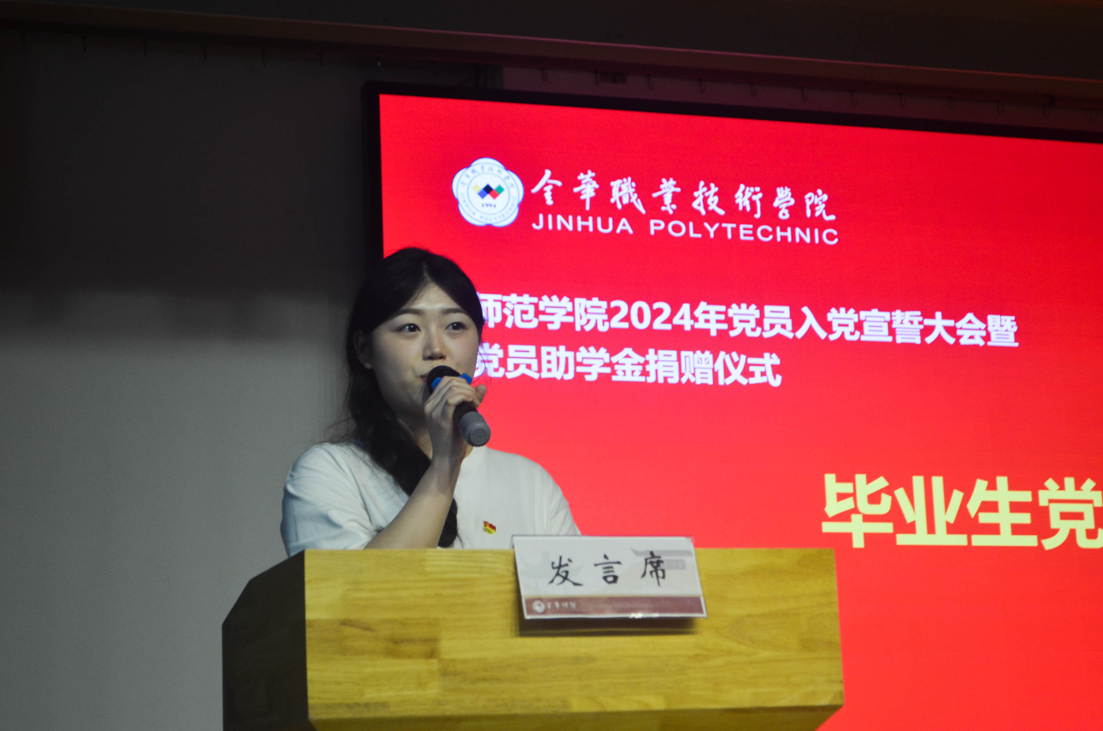 会上,小学教育党支部和学前教育第二党支部的毕业生党员代表分别上台发言,他们回顾了自己的大学生涯,分享了自己的入党感悟,并纷纷表示在未来的工作岗位上将继续发挥党员先锋模范作用,做德才兼备并勇于创新的人,做富有责任并敢挑重担的人!
