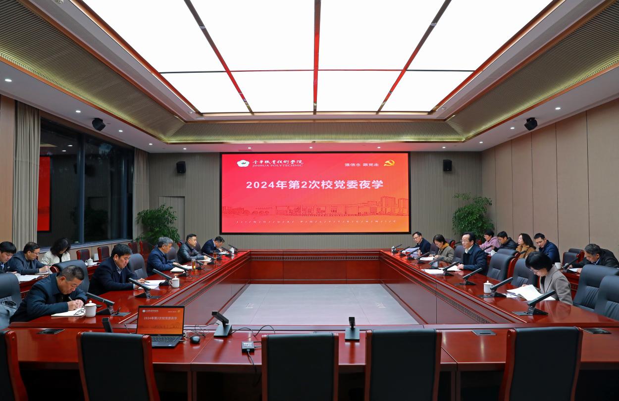 3月7日晚,金职院党委开展2024年第2期(总第38期)夜学,专题学习贯彻省委“新春第一会”精神,研究部署学校相关工作。党委书记王振洪主持会议并讲话。校党委领导班子成员,办公室、教务处、学生处、人事处、科技处负责人,二级学院院长参加学习。