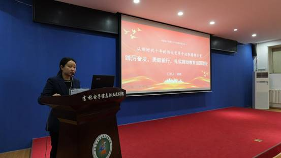 为深入学习宣传贯彻党的二十大精神,弘扬爱国主义精神,激励全院师生不忘来路接续奋斗,推进学院精神文明建设高质量发展。9月27日下午,财经学院于主校区办公楼多功能报告厅举办以“踔厉奋发,勇毅前行,扎实推动教育强国建设”为主题的讲座活动。活动特邀中共吉林市委党校杨帆主任作主题宣讲,财经学院全体教职工,学生入党积极分子及学生干部参加了此次讲座。讲座由财经学院党总支书记徐洋主持。