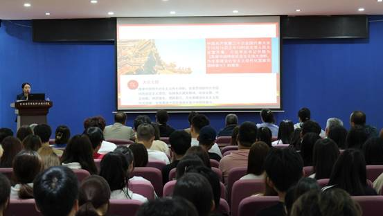 杨帆以《踔厉奋发,勇毅前行,扎实推动教育强国建设——从新时代十年的伟大变革中汲取精神力量》为题,从“新时代十年的‘两个大局’时势之变”“新时代十年伟大变革与科教兴国战略”“坚持立德树人培育担当大任的时代新人”三个层面进行了系统阐述,重点融入了二十大报告中科教兴国方面的内容以及中央政治局第五次集体学习关于建设教育强国的有关论述,并结合学院专业实际,树立教师立德树人的教育理念,鼓励学生在学术上和实践上努力建功立业。