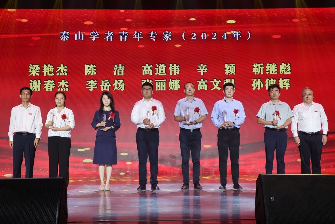 校长刘宗明宣读表彰决定。其中,建筑材料制备与测试技术重点实验室从教40年教师代表程新教授,国家重点研发计划政府间科技创新合作项目获得者侯鹏坤教授,泰山学者青年专家(2023年)杜鹏和孙伟老师,以及泰山学者青年专家(2024年)张丽娜老师,收到表彰祝贺。刘宗明校长同时号召全校广大教职工要以受表彰的同志为榜样,强化使命担当,践行教育家精神,全面展示立德树人、自信自强的精神风貌,以更加高昂的斗志、更加务实的作风,解放思想、敢闯快干,为把学校建设成为创新性、开放式、有特色的高水平应用研究型大学而努力奋斗!