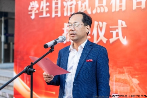 任旭东代表学校向新任的学生自治宿舍楼栋育人导师、学生自治委员会全体成员表示祝贺;并就如何做好学生自治试点宿舍楼栋工作提出明确要求。任旭东强调,一是要统一思想认识,加强工作指导,各相关单位要高度重视试点工作,加强协同联动;二是要健全规章制度,切实履职尽责,从制度上保障宿舍楼栋学生自治工作的规范开展,在职责岗位中锻炼学生“四自”成效;三是要强化总结凝练,提升育人成效,各相关单位要注重边实践边总结,积极凝练学生深度参与社区治理的育人经验和方法,努力探索出一条具有江大特色的社区育人新路径,助力学校“一站式”学生社区建设取得更大成效。