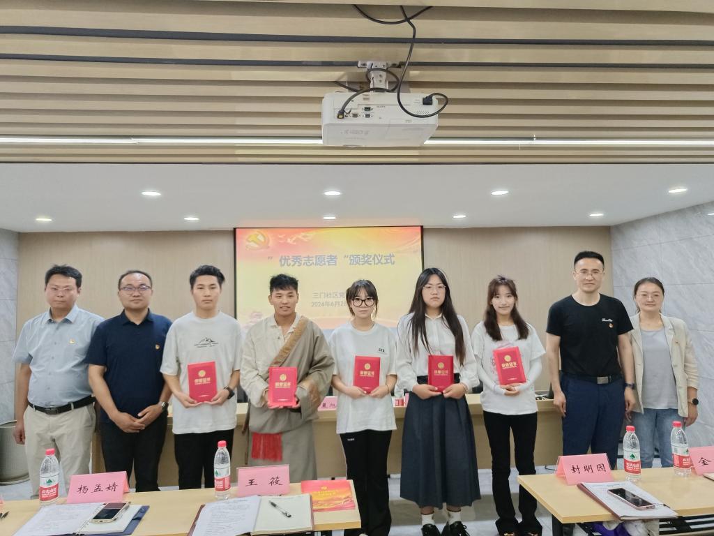 签约仪式前,吴志泽介绍了社区党建以及与共建单位开展工作的基本情况。万晨旭就如何在社区建设中发挥高校优势提出建议。卜兵总结表示,希望通过党建引领,激发社区和学校的内生动力,以共建联建实现优势互补,打通青年志愿者服务地方“最后一公里”。活动最后,学院和社区领导为在社区志愿服务中有优异表现的学生代表尼玛次仁等同学颁发“优秀志愿者”证书,鼓励他们继续用行动践行志愿服务精神,提升志愿服务水平。