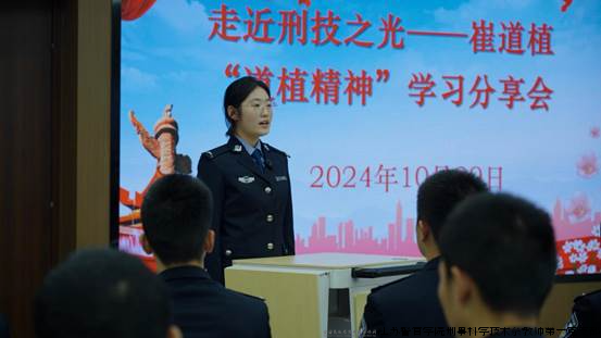 为进一步加强我系学生的忠诚警魂教育,深入学习“道植精神”,不断汲取前进力量,近日,刑事科学技术系教师第一党支部与学生大队党支部联合举办“道植精神”学习宣讲会,活动邀请赴黑龙江专访崔道植同志的“沐光铸梦”团队导师余放、学生代表陶冉、秦浩然、龚添靖等主讲,分享采访崔老的过程经历和心得感悟,23级部分学生、辅导员代表参加。