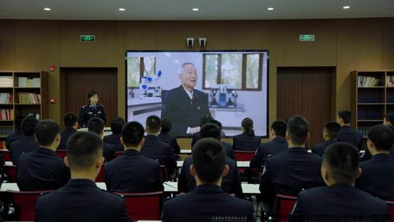 会上,教师第一党支部党员余放老师介绍了崔道植同志几十年如一日扎根刑事科学技术领域的感人故事,结合此行录制的专访视频,余放讲述了此次采访中崔老对刑技学子的殷殷嘱托。弹道有痕,忠诚无悔,视频中,有着“中国刑警之魂”称号的崔道植老先生讲述自己的从警初心,表达对党的赤子之心,为刑技学子树立了榜样。