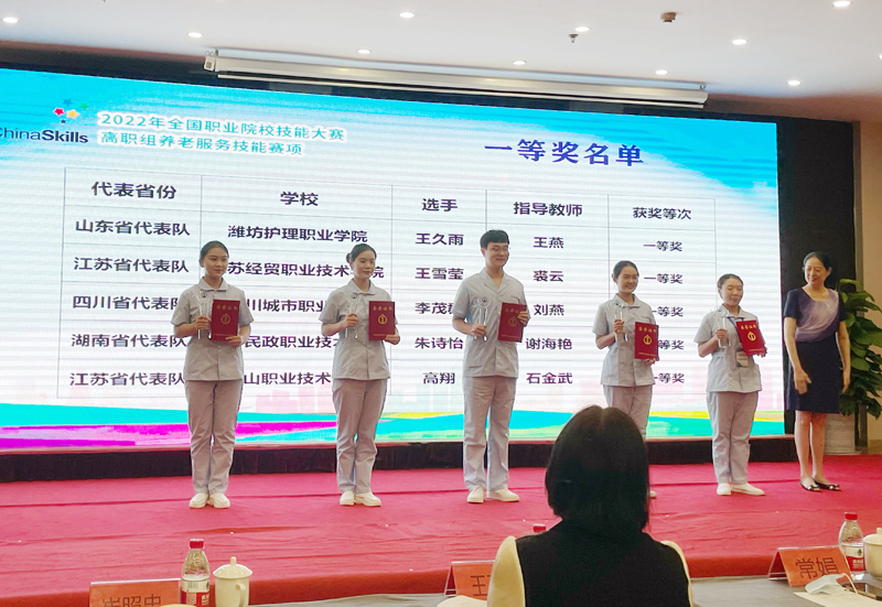 8月21日,2022年全国职业院校技能大赛“养老服务技能”赛项在山东落下帷幕,全国各省、自治区、直辖市49名选手参赛。健康学院、老年产业管理学院(合署)2020级老年服务与管理专业王雪莹同学以优异成绩获一等奖,裘云老师荣获优秀指导教师奖。此次国赛取得优异成绩充分展示近年来学院人才培养成效,进一步提升办学影响力。