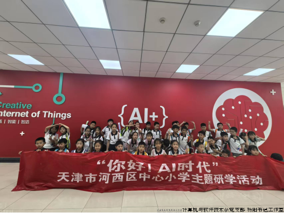 为深入贯彻落实习近平总书记关于科技创新和科普教育的重要指示精神,充分发挥党建引领作用,5月30日,人工智能学院党支部精心策划组织天津市河西中心小学 1200名师生开展 “AI 时代你好!——人工智能与互联网科创主题行走的思政课”研学活动,并隆重举行科学教育实践共建基地签约授牌仪式。活动以“党建红”引领“科技蓝”,通过沉浸式科技体验与思政教育融合,厚植青少年科技强国信念。