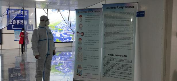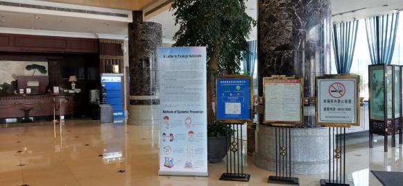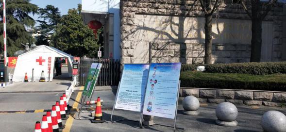 镇江两所高校有着将近4000位留学生,外防工作不可小觑。在国内外防警报拉响的第一时间,江苏科技大学英语系党支部主动撰写了告外国人的一封信,对来镇的外国人士给与生活指导、提供救助方式和自我防护措施宣传,做成宣传板放置在学校大门口、几个火车站和国际饭店。
