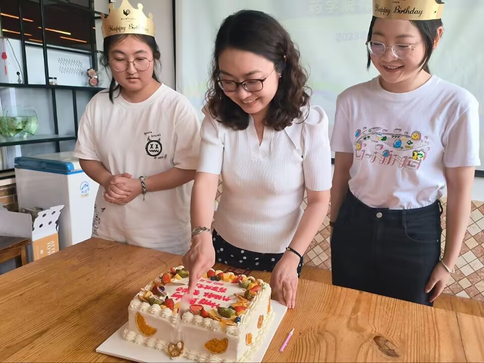 活动过程中,学院为当天过生日的2名同学准备了生日蛋糕并送上祝福,学院领导们为学生代表佩戴院徽,希望同学们更深入的感受自信、自豪的学院文化,与学院同发展共进步。