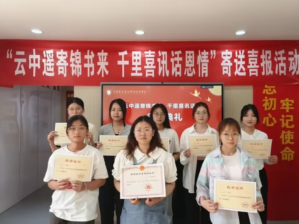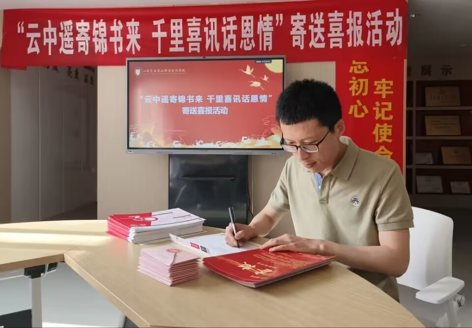 为进一步推动家校共育深度融合,搭建家校联动育人平台,充分发挥典型示范引领作用,药学院特举办“云中遥寄锦书来,千里喜讯话恩情”寄送喜报活动,为在校表现优秀的学生家庭寄送喜报。