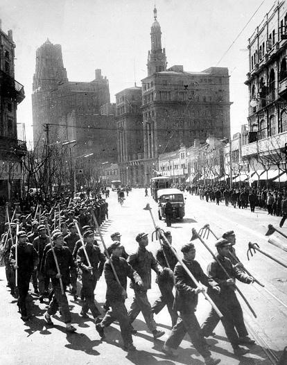 △八连战士参加上海市政建设