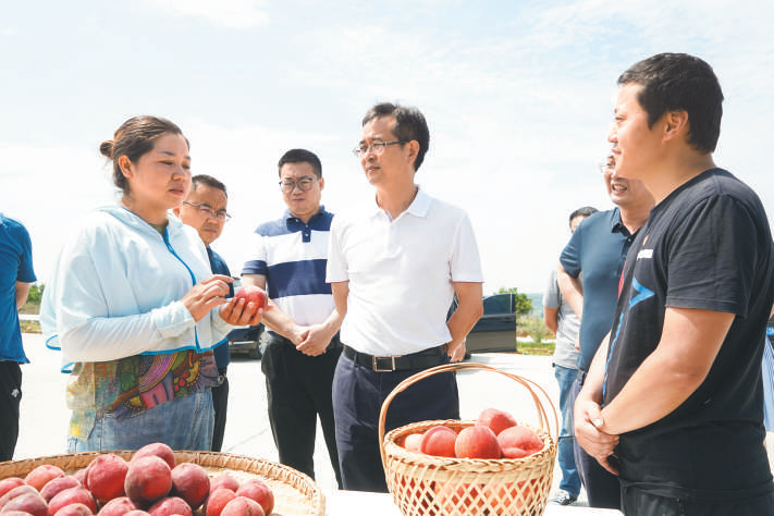姚永红(中)深入黄土镇芋河村,了解特色产业发展情况。
