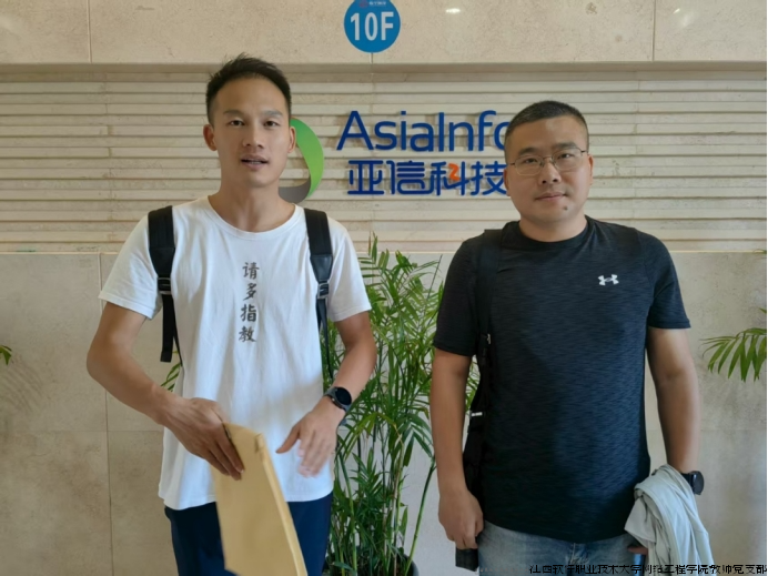 为深入了解我院实习学生在企的工作情况,关怀学生实习期间的生活状况,进一步推动校企合作,优化就业指导服务,保障学生实习期间的安全与权益,8月10日,网络工程学院学工办主任夏顺顺和网络工程技术专业教研室汤建军老师走访亚信科技控股有限公司看望实习学生。