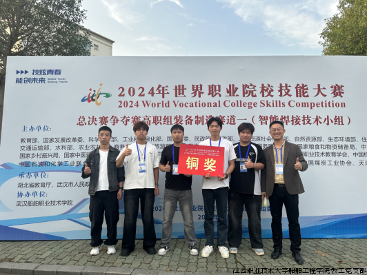 2024年10月26日-29日,2024年世界职业院校技能大赛总决赛争夺赛高职组装备制造赛道——“智能焊接技术”赛项在武汉船舶职业技术学院举行,参赛队伍来自全国27个省(自治区、直辖市),共56支参赛队伍、192名参赛选手,经过现场的激烈角逐,我校船舶工程学院教工党支部教师指导项目在该赛项中获铜奖。