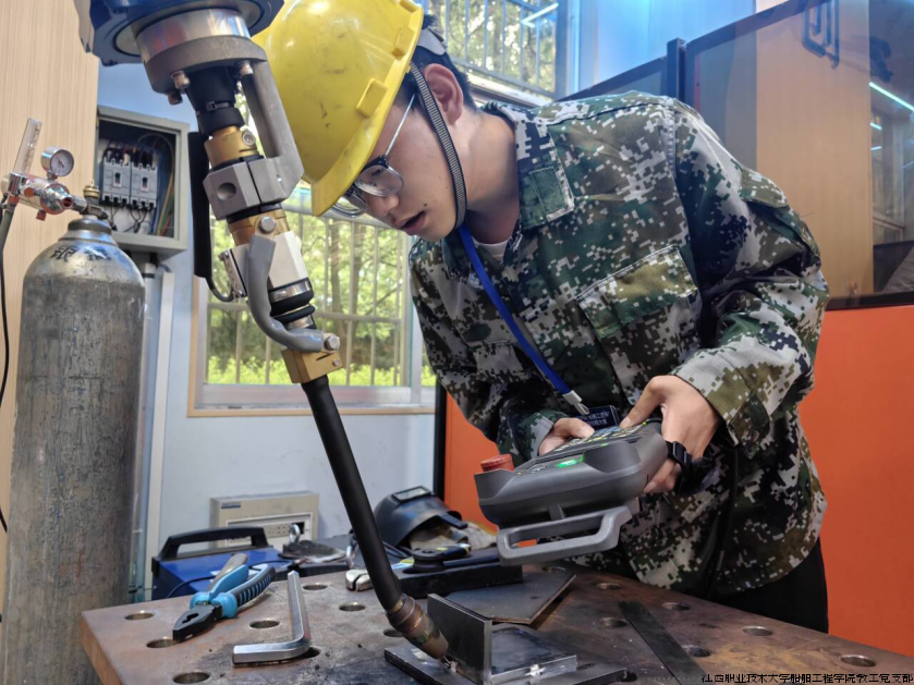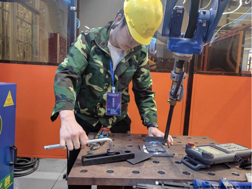 本次大赛以“兴船报国 焊而无憾”为主题,40余名学子同场竞技。赛前,选手们在实训基地苦练机器人焊接编程、工艺优化等技能,反复调试至0.1毫米精度。比赛严格对标船舶行业真实生产场景,要求选手在90分钟内完成试件打磨、精准装配及智能焊接全流程操作。操作规范、安全文明生产等均纳入考核,采用毫米级精度评分标准。赛场上,机械臂运转的嗡鸣声与焊花飞溅的爆裂声交织成一曲技能交响乐。选手们沉着应对曲面焊缝等严苛技术要求,汗水浸透工装却无暇擦拭。"每条焊缝都要经得起海浪检验"的培训叮嘱回响在每位选手耳畔,他们将课堂所学完美转化为实战能力。