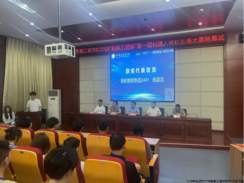 船舶工程学院书记彭欣健在闭幕致词中强调:大赛是“岗课赛证”综合育人的生动实践,未来学院将深化产教融合,为江西制造业输送更多高技能人才。