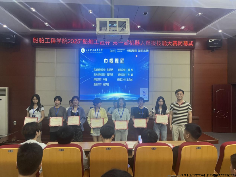 6月17日,江西职业技术大学船舶工程学院2025年“船舶工匠杯”机器人焊接技能大赛圆满落幕。经过激烈角逐,施晶龙等5人获一等奖,毕珊等8人获二等奖,赖佳强等13人获三等奖,彭培艳等7名女选手荣获“巾帼焊匠”称号。