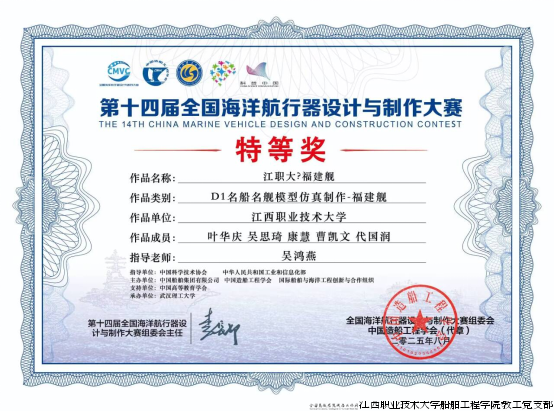 此次竞赛优异成绩的取得,是我校持续推进“双高计划”建设、深化船舶专业群教育教学改革的重要体现,也是学院长期注重“以赛促教、以赛促学”、强化学生实践创新培养的显著成果。通过竞赛,有效提升了学生在工程设计、智能控制、团队协作及复杂问题解决等方面的综合职业能力,进一步夯实了学校高素质技术技能人才的培养质量。